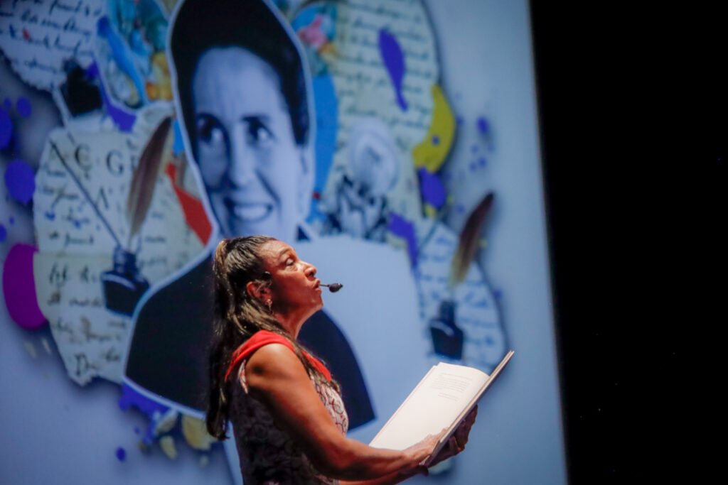 El momento artístico estuvo a cargo de Carmen Solorio, quien interpretó una pieza que entrelaza el arte de la palabra y la música a través de la voz poética de Griselda Álvarez. Acompañó su presentación con música original de Gilberto Moreno Ramos.