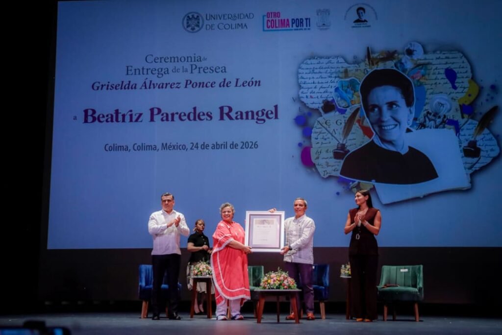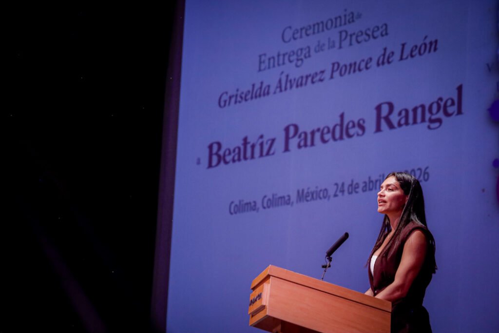 Más que acudir a recibir un reconocimiento este viernes 24 de abril, Beatriz Paredes Rangel ofreció una clase magistral de lo que significan la responsabilidad, el carácter, el servicio y la conciencia política cuando se está en un cargo público. La política mexicana vino a Colima, al teatro Universitario, a recibir la presea “Griselda Álvarez Ponce de León”, que le otorgaron de manera conjunta la Universidad de Colima, el Ayuntamiento de Colima y el Colectivo Griselda Álvarez Ponce de León.