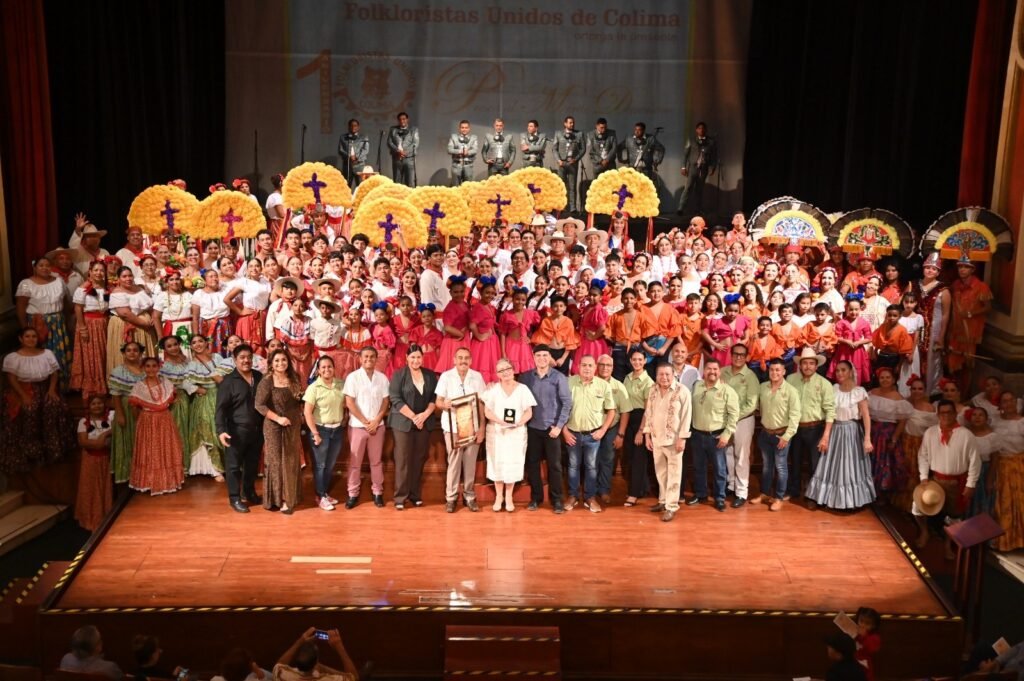 Con apoyo de la Subsecretaría de Cultura del Gobierno del Estado de Colima, la asociación de Folkloristas Unidos que preside César Cárdenas López, celebró su décimo aniversario con una función especial que llenó el teatro Hidalgo. En el evento se entregó la Presea al Mérito Dancístico ‘Manuel Hernández Luna’ a Rosa Margarita Cárdenas, en reconocimiento por sus 50 años de trayectoria contribuyendo a la promoción y difusión de la danza en la entidad.