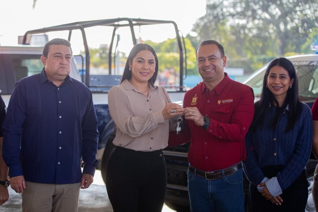 Indira Vizcaíno entregó dos patrullas y equipamiento a la Dirección de Seguridad Pública y Vialidad de Tecomán