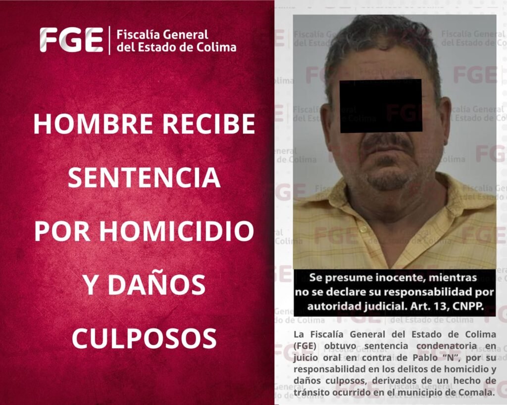 La Fiscalía General del Estado de Colima (FGE) obtuvo sentencia condenatoria en juicio oral en contra de Pablo “N”, por su responsabilidad en los delitos de homicidio y daños culposos, derivados de un hecho de tránsito ocurrido en el municipio de Comala. De acuerdo con lo expuesto durante el juicio, el 4 de noviembre de […]