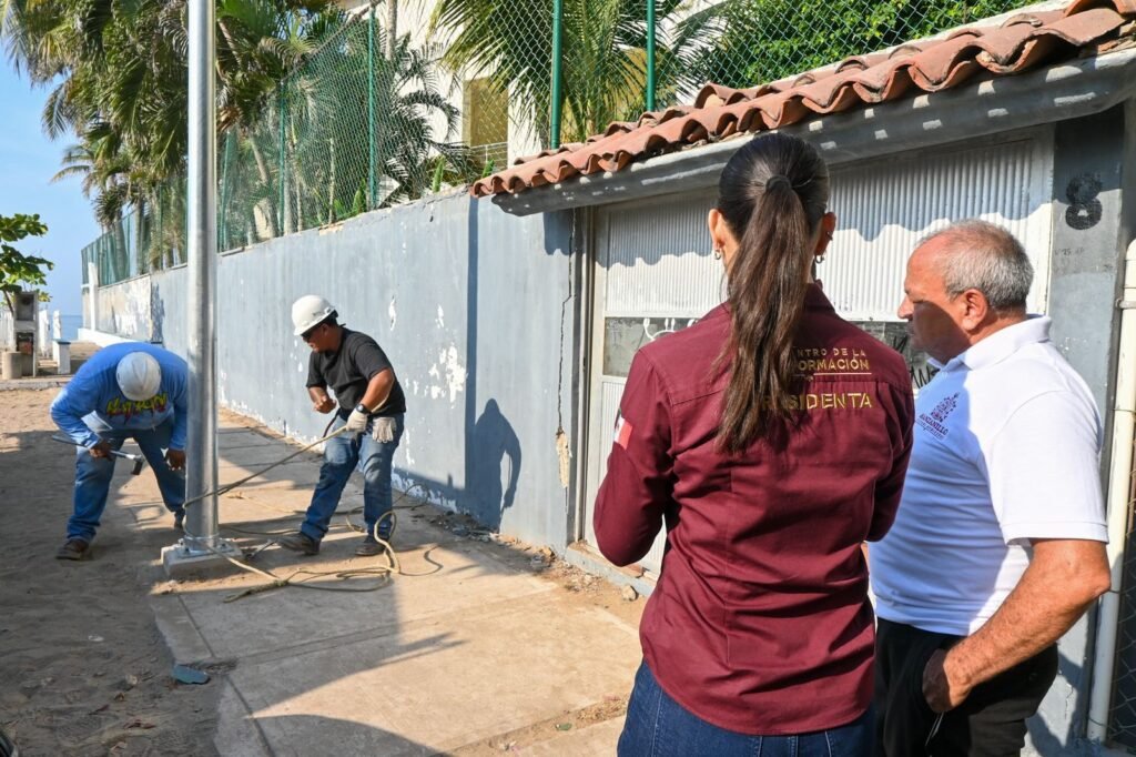 Rosi Bayardo inicia instalación de luminarias en col. Playa Azul, una demanda histórica de manzanillenses y turistas