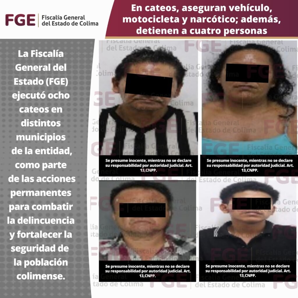 La Fiscalía General del Estado (FGE) ejecutó ocho cateos en distintos municipios de la entidad, como parte de las acciones permanentes para combatir la delincuencia y fortalecer la seguridad de la población colimense. Los mandamientos judiciales se realizaron del 09 al 15 de febrero del presente año en los municipios de Colima, Villa de Álvarez, […]