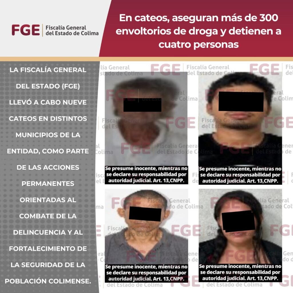 La Fiscalía General del Estado (FGE) llevó a cabo nueve cateos en distintos municipios de la entidad, como parte de las acciones permanentes orientadas al combate de la delincuencia y al fortalecimiento de la seguridad de la población colimense. Los mandamientos judiciales fueron ejecutados del 02 al 08 de febrero del presente año en los […]