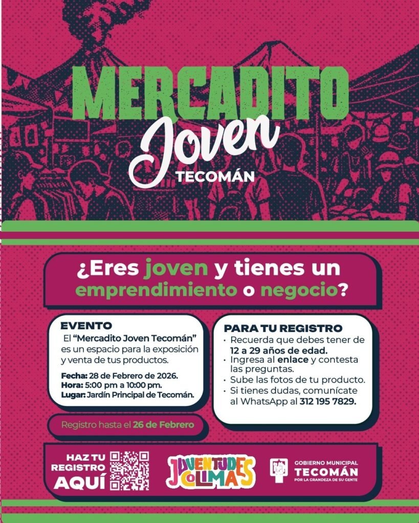 La Subsecretaría de las Juventudes (Subsejuv) del Gobierno del Estado de Colima, en coordinación con el Ayuntamiento de Tecomán, invita a las y los jóvenes emprendedores del municipio de Tecomán para participar en el 2° Mercadito Joven , espacio pensado para impulsar la exposición y venta de productos creados por juventudes tecomenses y colimenses en […]