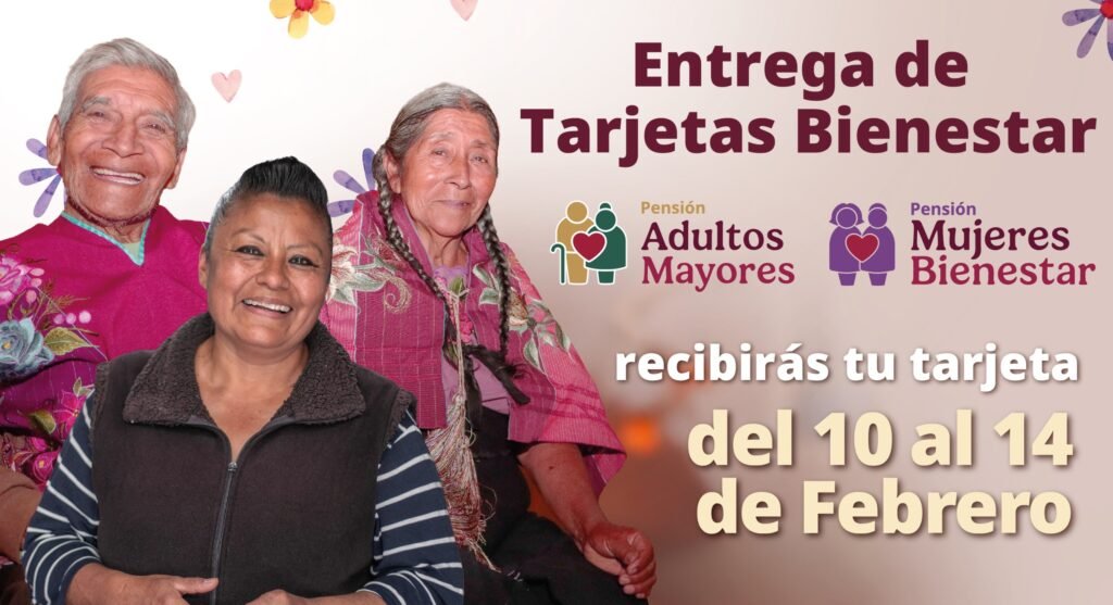 Bienestar, realiza del 10 al 14 de febrero, la entrega de tarjetas de las Pensiones Mujeres Bienestar y Adultos Mayores