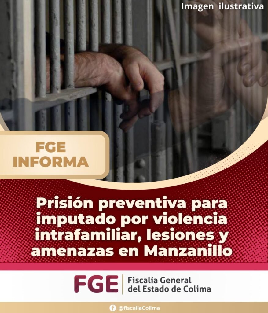 Prisión preventiva para imputado por violencia intrafamiliar, lesiones y amenazas en Manzanillo