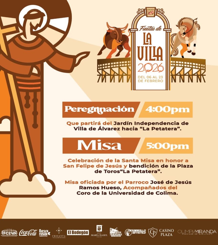 Villa de Álvarez, Col.- Este Jueves 5 de febrero a las cinco de la tarde se celebrará la tradicional Misa en honor a San Felipe de Jesús, en la cual será bendicida la Plaza de Toros la Petatera.Previamente, a las cuatro de la tarde, se realizará la peregrinación que partirá del Jardín Principal de Villa […]