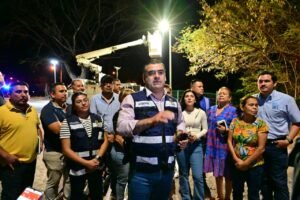 Colima, Col., 18 de marzo de 2026.- El Presidente Municipal de Colima, Riult Rivera Gutiérrez, supervisó la colocación de luminarias