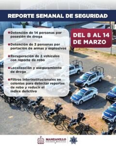 La Dirección de Seguridad Pública de Manzanillo informó que, como resultado de los patrullajes permanentes y operativos preventivos realizados en