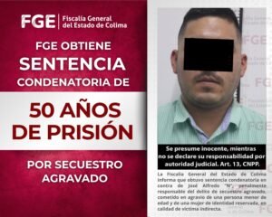 La Fiscalía General del Estado de Colima informa que obtuvo sentencia condenatoria en contra de José Alfredo “N”, penalmente responsable