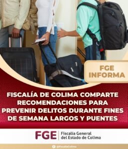 Fiscalía de Colima comparte recomendaciones para prevenir delitos durante fines de semana largos y puentes