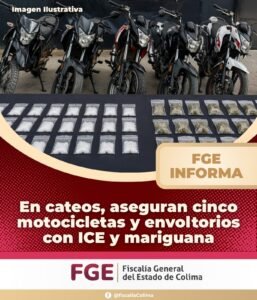 En cateos, aseguran cinco motocicletas yenvoltorios con ICE y mariguana