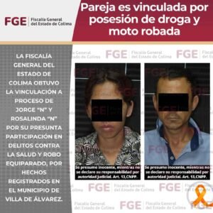 La Fiscalía General del Estado de Colima obtuvo la vinculación a proceso de Jorge “N” y Rosalinda “N” por su
