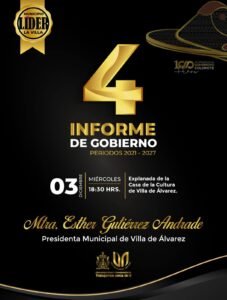 Villa de Álvarez, Col.- La Presidenta Municipal Tey Gutiérrez Andrade ofrecerá su Cuarto Informe de Gobierno este miércoles 03 de