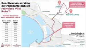 Subsemov realiza acciones para restablecer regularidad y operatividad de la ruta 11 en Manzanillo