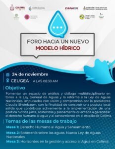 Gobierno de Colima, CONAGUA y CIAPACOV invitan a participar en el Foro estatal: Hacia un nuevo modelo hídrico