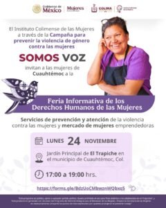 Instituto Colimense de las Mujeres (ICM) invita a la Feria de los Derechos Humanos de las Mujeres este lunes en El Trapiche, Cuauhtémoc