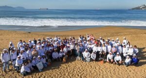 Este sábado, la presidenta municipal de Manzanillo, Rosa María Bayardo Cabrera, encabezó una jornada de limpieza en Playa Azul, la